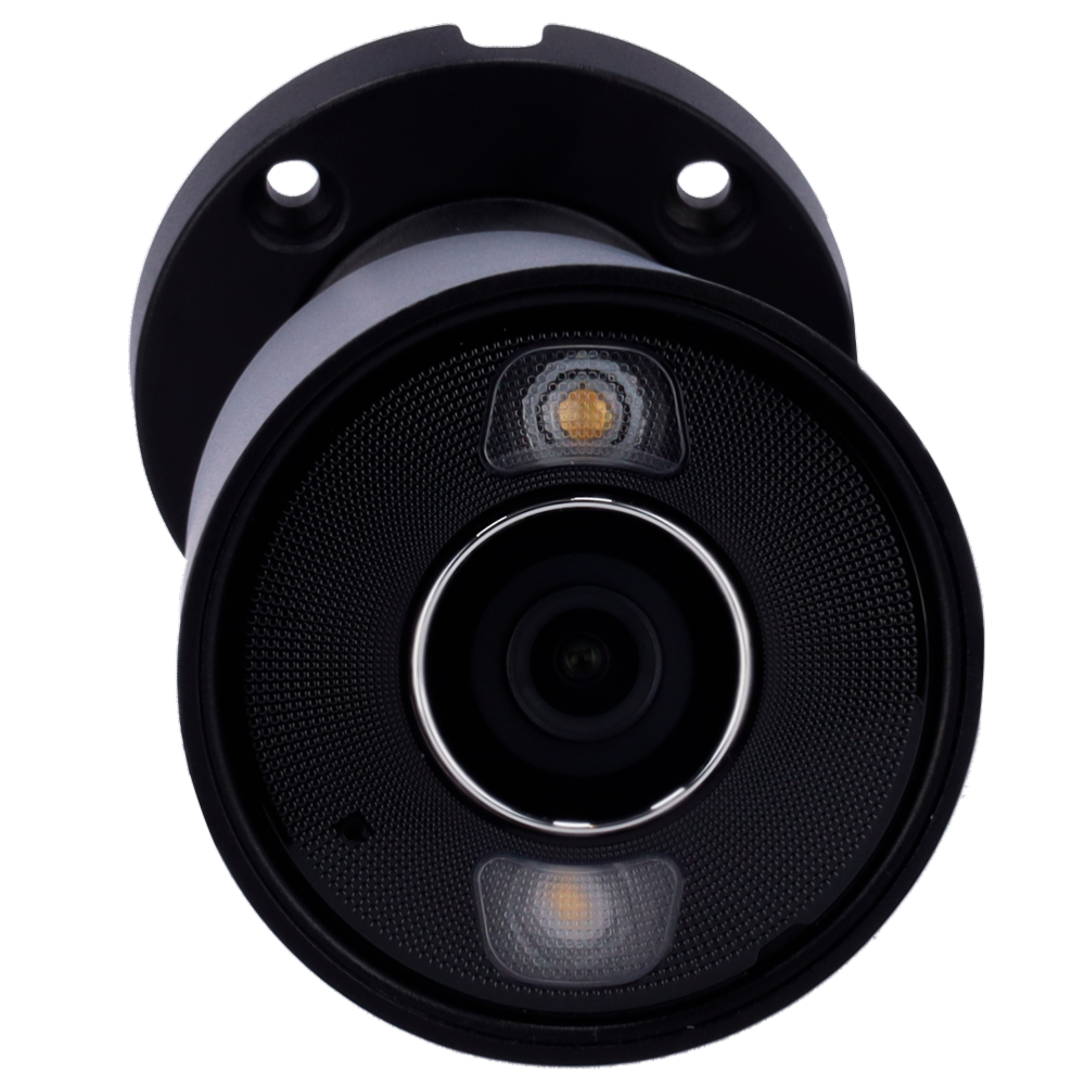 • Cámara de videovigilancia con resolución de 5 megapíxeles y lente de 4 mm, y con protección IP65. Cuenta con visión nocturna por luz blanca e infrarrojos de hasta 50 metros, micrófono integrado y compresión H.265 para ahorrar espacio de almacenamiento.