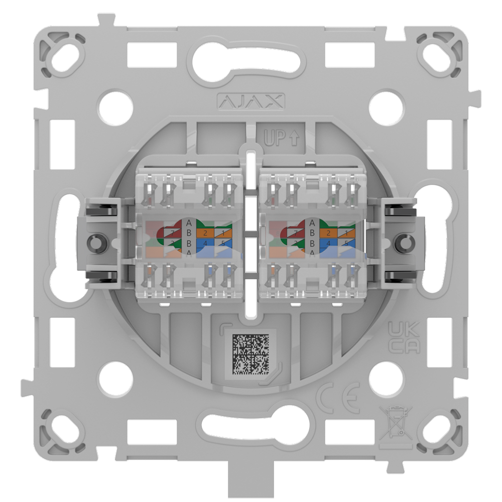 Ajax Outlet (LAN) es una base de enchufe Ethernet con dos puertos que admite una transferencia de datos de alta velocidad compatible con cables CAT.6 y CAT.5e, siendo una solución ideal para transmisiones de vídeo 4K y otras que requieran de un gran ancho de banda. Su instalación es rápida y sencilla ya que encaja en una caja de montaje estándar y no requiere cambios del cableado exsistente.
