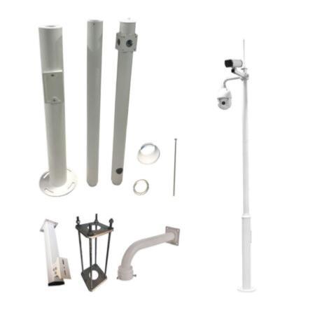 Báculo desmontable de 4,5m de altura en acero galvanizado de color blanco con soporte para cámara y speed dome