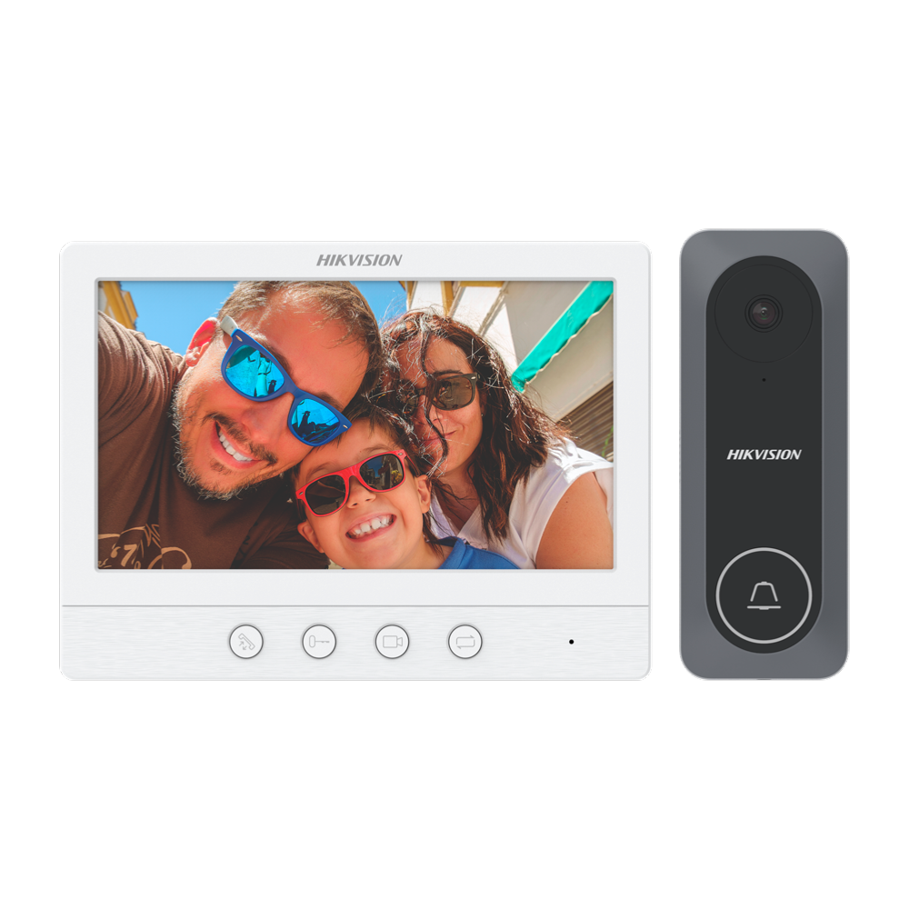 Kit formado por: DS-KB2412T-IM placa exterior de videoportero para superficie con cámara HD TVI y DS-KH2230T monitor interior con pantalla TFT LCD de 7" y botonera física