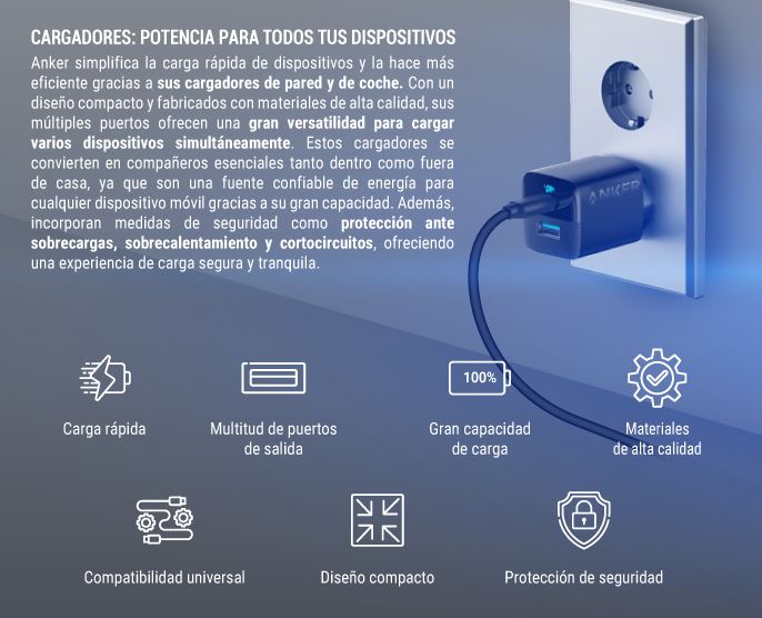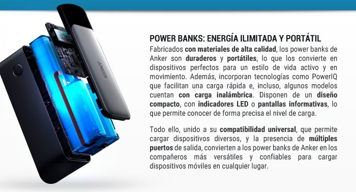 ![]() ![]() Fundada en 2011, Anker cuenta con un amplio y variado catálogo, donde se pueden encontrar dispositivos de alta calidad, como baterías externas, cargadores, cables USB y auriculares. Además, son pioneros en el desarrollo de tecnologías de carga rápida, poniendo especial foco en la atención al diseño, la durabilidad y la compatibilidad. Todo ell convierte a Anker en na excelente opción para aquellos que buscan accesorios tecnológicos confiables y duraderos. ![]() ![]() OFERTA DE POWER BANKS![]() Carga rápida PD12W Entradas USB-C, Salidas USB-C, Inalámbrica Carga 2 dispositivos a la vez ![]() 57,84 EUR (-38,00%) 35,86 EUR![]() Carga rápida PD100W Entrada USB-C , Salidas 2 USB -A, USB C Carga 4 dispositivos a la vez ![]() 173,54 EUR (-38,34%) 107,00 EUR![]() Carga rápida PD140W Entrada USB-C , Salidas 2 USB-C, 1 USB-A Carga 3 dispositivos a la vez ![]() 219,92 EUR (-38,85%) 134,49 EUR![]() OFERTA DE CARGADORES![]() Carga rápida Salidas 1 USB-A, 2 USB-C (IQ3.0 y PPS 1.0) Color negro ![]() 115,68 EUR (-38,00%) 71,72 EUR![]() Carga rápida Salidas 2 USB-C (IQ3.0 y PPS 1.0) Color blanco ![]() 57,84 EUR (-38,00%) 35,86 EUR![]() Carga rápida Salidas 1 USB-C (IQ3.0 y PPS 1.0) Color negro ![]() 50,60 EUR (-38,00%) 31,37 EUR![]() OFERTA DE CABLES![]() USB-A a USB-C Cable de nylon Longitud 0.9m | Color negro ![]() 14,44 EUR (-38,02%) 8,95 EUR![]() USB-A a USB-C Cable de nylon Longitud 0.9m | Color blanco ![]() 14,44 EUR (-38,02%) 8,95 EUR![]() USB-A a USB-C Cable de nylon Longitud 1.8m | Color negro ![]() 21,68 EUR (-38,01%) 13,44 EUR![]() OFERTA DE AURICULARES![]() 9 horas de autonomía | Refuerzo de graves Personalización via la app Soundcore Resistentes al agua IPX5 Carga rápida ![]() 57,84 EUR (-38,00%) 35,86 EUR![]() 10 horas de autonomía en uso Personalización via la app Soundcore Resistentes al agua IPX5 Carga rápida ![]() 57,84 EUR (-38,00%) 35,86 EUR![]() 50 horas de autonomía en uso Hasta 98% Reducción Ruido Carga rápida Personalización via la app Soundcore ![]() 216,92 EUR (-38,00%) 134,49 EUREsperamos que esta información te haya sido útil. Si has seleccionado diferentes productos, comprueba que las cantidades son las correctas La cantidad total se muestra en la página del carrito de la compra, donde todavía puedes hacer cualquier cambio desde la misma. No olvides hacer uso de tus puntos descuento o código promocional. IMPORTANTE: Introduce el CÓDIGO PROMOCIONAL AL FINAL, UNA VEZ QUE YA TENGAS SELECCIONADOS TODOS LOS PRODUCTOS EN EL CARRO DE LA COMPRA Disponemos de amplio stock y el plazo de entrega será de 24/48 horas en función de la hora de entrada del pedido. La entrega será gratuita (si se cumple el valor mínimo del pedido de 150 euros): No dude en ponerse en contacto con nosotros para cualquier aclaración necesaria. Seleccione la forma mas conveniente para usted de las descritas en nuestra página de contacto. ![]() |