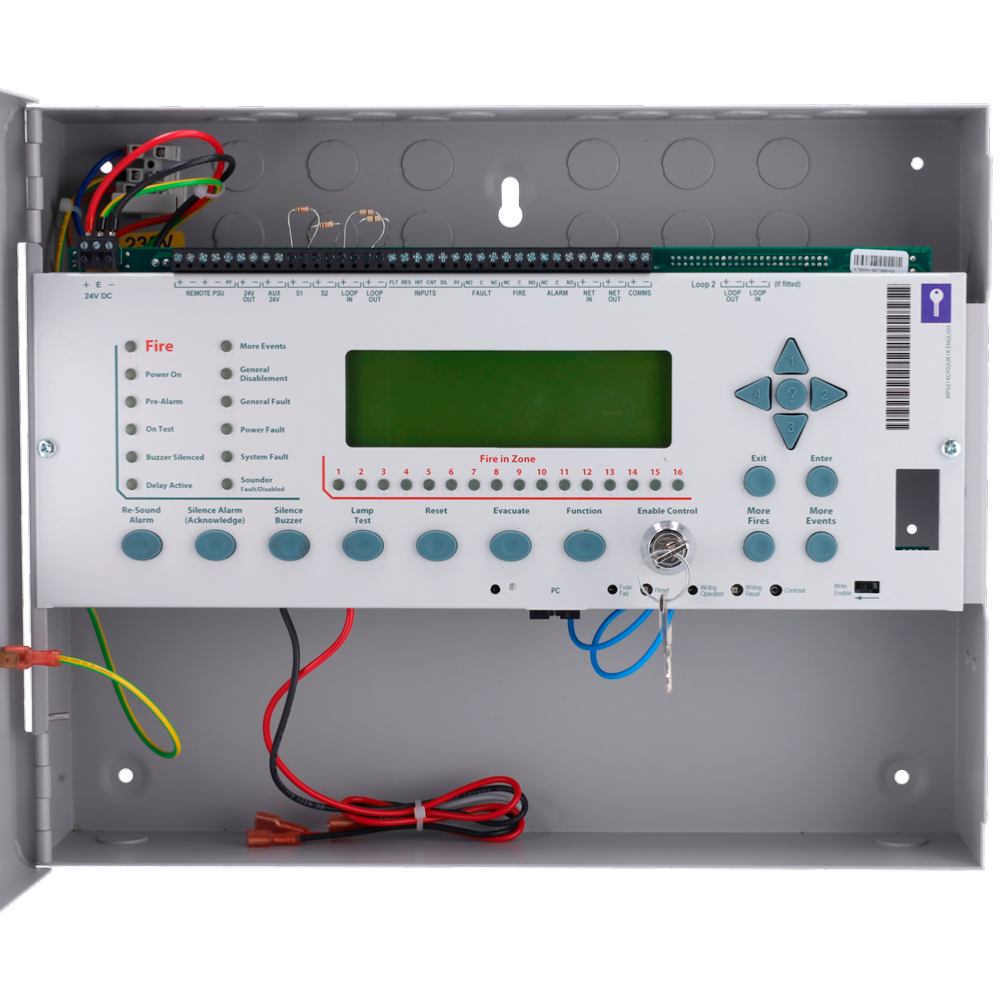 Una fuente de alimentación integrada de 3 amperios y un cargador de batería con compensación de temperatura proporcionan suficiente energía para las dos salidas de sirena estándar de 1 amperio, sirenas alimentadas por lazo y otros dispositivos.