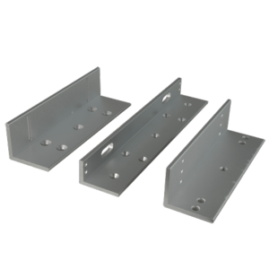 Compuesto por 3 perfiles metálicos con forma de escuadra. Se combinan 2 de ellos para la instalación en "Z" de la placa imantable en la hoja de la puerta y el perfil restante se utiliza para la instalación del electroimán. Útil para puertas abatibles con apertura hacia el interior. Fabricado en duraluminio anodizado para una alta resistencia y durabilidad.